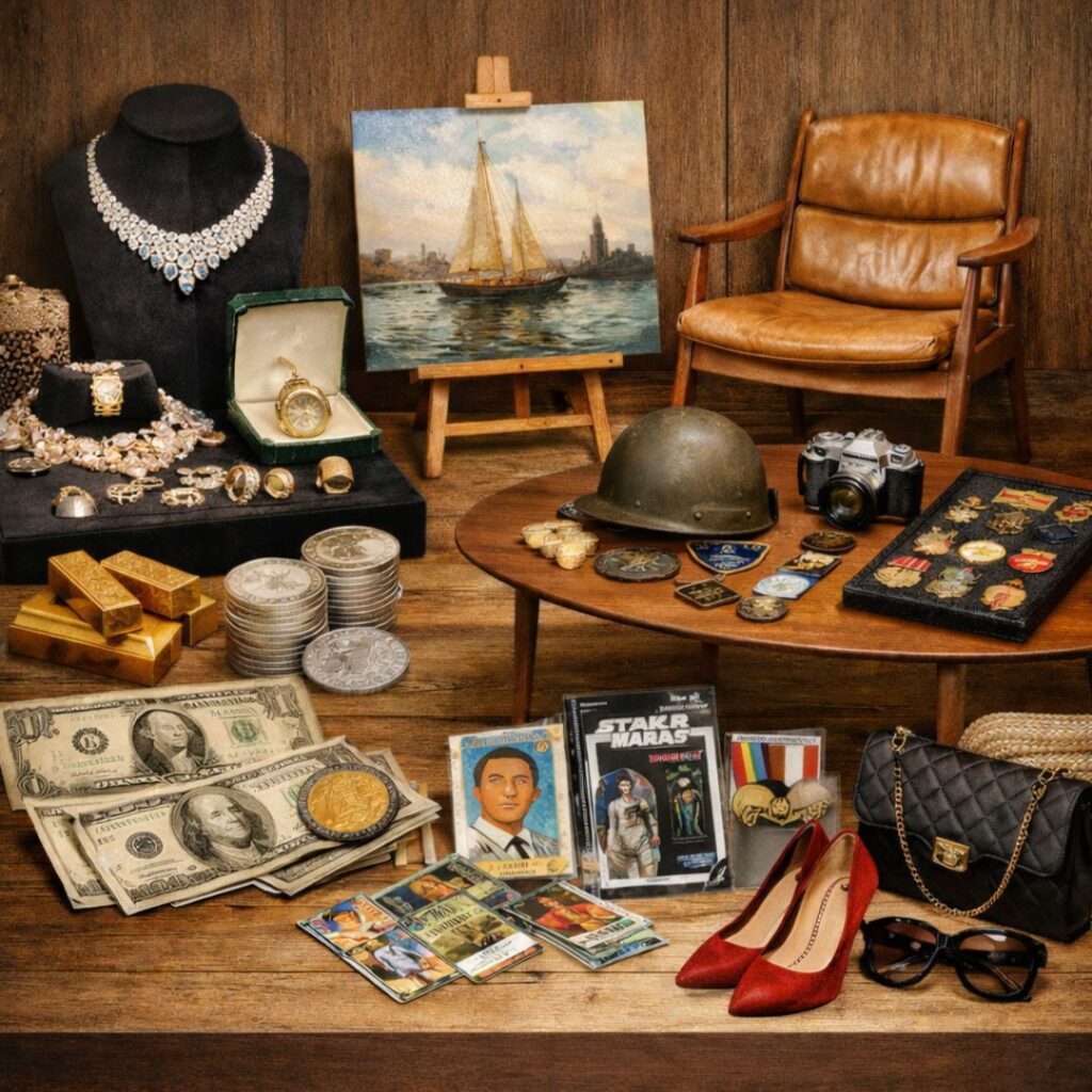 - Jewelry, precious metals, coins and currency.
